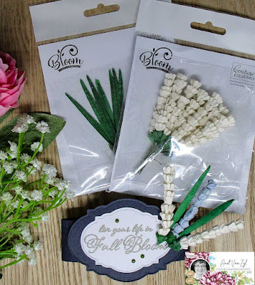 Sentiment: LOTV Christmas Sentiment Tag Stamp. Sizzix Seasonal Flowers Framelits Die and Stamp Set. Memory Box Precious Bells. Impression Obsession Fir Trees. Ranger Icicle and Frosted Lace Stickles.