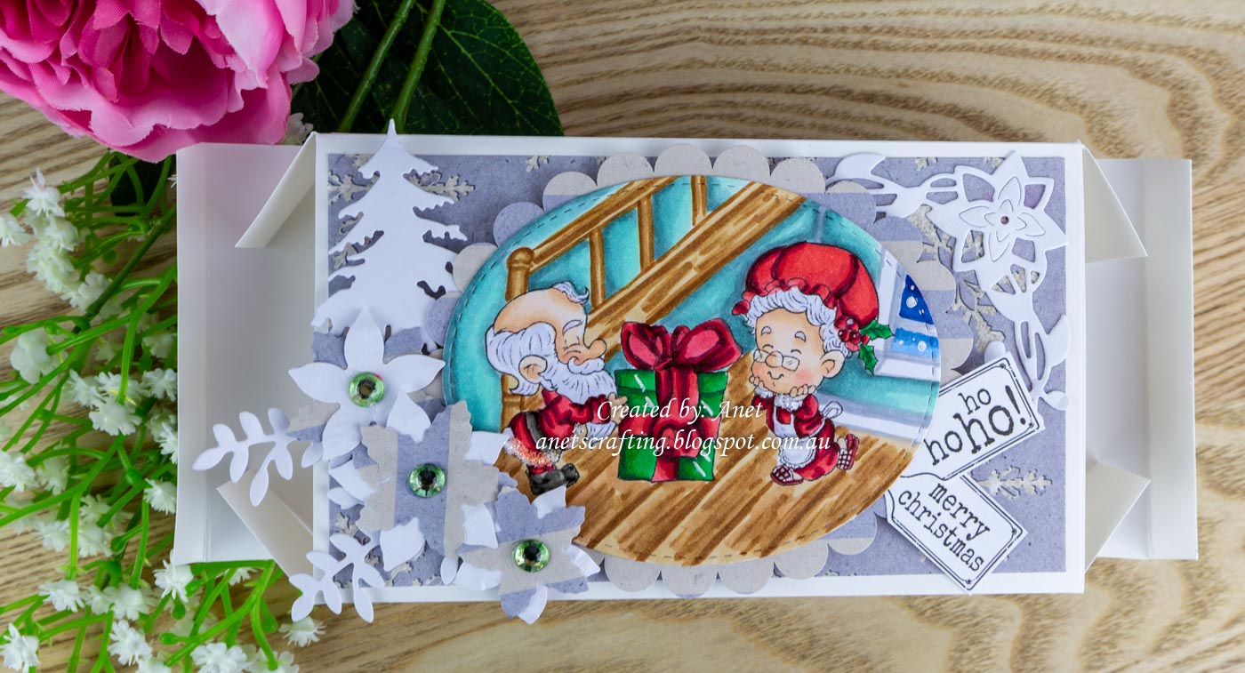 Andrée Crowe chose #5 AnetA stunning Christmas card. Anet created beautiful velum panel backgrounds for the wonderful silver die cuts. There is also a tutorial on how to create the alcohol ink paper and the fabulous balcony card design.